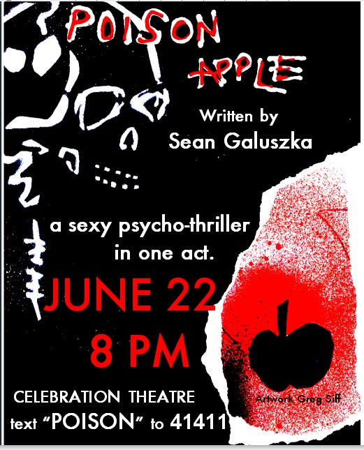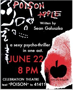 134 West is proud to produce an original one-act play, Poison Apple, written by Sean Galuszka and directed by Susan Lambert. After a sold out premiere at the Celebration Theater as part of the 2011 Hollywood Fringe Festival we are playing Fri. & Sat. nights through Aug 13th! And for interested folks with a mobile phone, the play started a week before it’s premeire, with a special mobile transmedia effort – one of the first ever pre-show text stories for a play. Fans of the show could text “poison” to 41411 to follow characters having a text conversation leading up to the show’s premiere. Very exciting! Find out more & get tix: http://www.brownpapertickets.com/event/185973